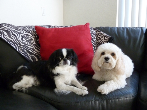 Japanese Chin and Cavashon They love each other.