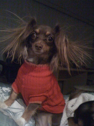 Half long hair chihuahua,half daschund.Hysterical!
