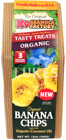 K9 Granola Factory Banana ChipsOrganic Banana Chips made with Organic Coconut Oil 12 ozIngredients: Bananas, coconut oil, sugar.Guaranteed Analysis: Crude Protein 4% (min)Crude Fat 52% (min)Crude Fiber 31% (max)Crude Moisture 10% (max)