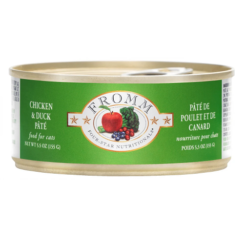 Fromm Four-Star Nutritionals Chicken & Duck Pâté Food for Cats is formulated to meet the nutritional levels established by the AAFCO Cat Food Nutrient Profiles for All Life Stages.