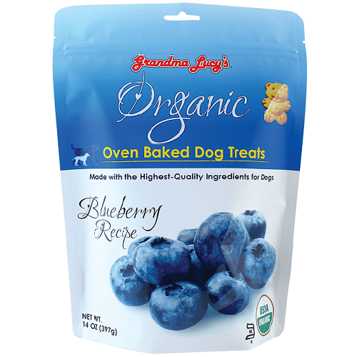Grandma Lucy's Organic Baked Blueberry Dog TreatsGrandma Lucy's organic dog treats are not made in a factory but baked in a bakery by people who love their pets. Since 1999, Grandma Lucy's has taken great pride in making wholesome, natural and delicious pet treats. Your dog will love the great taste of our Organic Oven-Baked Dog Treats, but what you will love most is the fact that they are made with organic, human-quality ingredients. The treats are so tasty, your dog will beg for more. Grandma Lucy's Organic Oven-Baked Dog Treats – an organic treat you will feel good about giving your pet.Ingredients: Organic Wheat Flour, Organic Dehydrated Cane Juice, Organic Canola Oil, Organic Cane Syrup, Organic Rice Starch, Organic Blueberry Flavor, Organic Vanilla Extract, Soy Lecithin.Guaranteed Analysis:-Crude Protein (min.) 5.5%-Crude Fat (min.) 17%-Crude Fiber (max.) 0.73%-Moisture (max.) 8%Available Size: 14 oz
