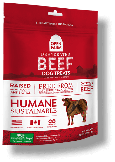 Open Farm: Dehydrated Dog Treats - BeefHUMANELY RAISED GRASS FED BEEF, FREE FROM ANTIBIOTICS & GROWTH HORMONES, DEHYDRATED AT LOW TEMPERATURES TO FORM A HEALTHY & TASTY TREAT