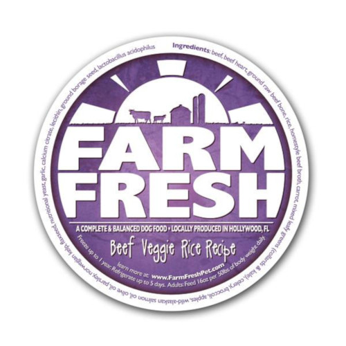 Farm Fresh Beef Veggie Rice Dog Food ingredients include: