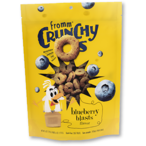 Blueberry Blasts!What happens when you mix chicken, blueberries, and a touch of tapioca? Here at Fromm, it means we’re making a great dog treat that’s delicious, wholesome, and recklessly crunchy. And every now and then, our rascally Flash Fowler takes the plunge and creates a blast of flavor that really gets attention. Now it’s your dog’s turn to have some fun. Grab a bag and let ‘em make some noise. It’s a blast!