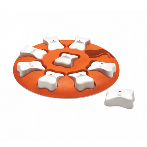 A great way to introduce your pup to problem solving and dog puzzle games, Dog Smart is a level 1 treat dispensing dog game to keep your canine busy, happy and mentally engaged, and to prepare them for more complex level 2 & 3 puzzle games in the future. The simple hide and seek dog treat dispenser game features a plastic puzzle board with 9 bone covers which must be removed before dispensing the hidden treats – choose to place them flush with the board or slightly elevated for different challenge levels. This interactive dog game provides a mentally stimulating and entertaining challenge for your dog and hours of fun for owners. It’s an ideal boredom buster and puzzle feeder dog toys are a great way to slow down meal times. Every good dog’s toy box needs a treat dispensing dog toy to keep dogs busy and distracted from potentially destructive behaviors. Nina Ottosson has been creating dog games and puzzle toys with different difficulty levels for all types of dogs for more than 25 years. Nina received a 2017 Pet Age Icon Award for her development of innovative treat dog puzzle toys and raising awareness for mental stimulation being an important part of a dog’s health.