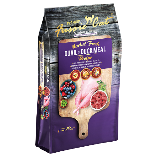 Fussie Cat Quail And Duck Dry Cat FoodFussie Cat makes their top-quality foods in an FDA-registered kitchen—the same kitchen that produces canned food that’s fit for people to eat. Thorough quality inspections are conducted daily for food safety, heavy metals, pathogens, contamination and pesticides, so the end product is everything that you should expect it to be. Formulated to meet the nutritional levels established by the AAFCO Cat Food Nutrient Profiles for All Life Stages.