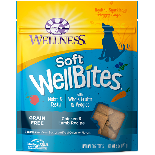 Chicken, Lamb, Chickpeas, Ground Potatoes, Vegetable Glycerin, Guar Gum, Carrots, Cane Molasses, Salt, Natural Smoke Flavor, Blueberries, Garlic Powder, Flaxseed, Phosphoric Acid, Sweet Potatoes, Apples, Sorbic Acid (a preservative), Mixed Tocopherols added to preserve freshness, Rosemary Extract, Green Tea Extract, Spearmint Extract.