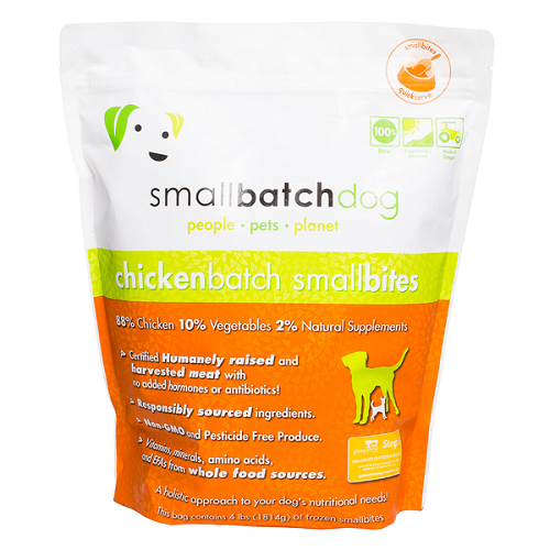 88% humanely raised and harvested chicken, 10% organic produce, 2% natural supplementschicken, skinless chicken necks, chickenh2> backs, chicken livers, chicken hearts, chicken gizzards, organic carrots, organic yams, organic broccoli, organic squash, salmon oil, organic kale, organic collards, organic apple cider vinegar, organic kelp*, organic bee pollen, organic parsley, organic wheat grass, organic bilberry, organic garlic, organic rosemary, organic basil, vitamin e supplement