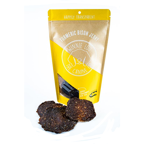 Introducing our Turmeric Bison Jerky! Just two ingredients, tons of flavor, and sure to please your pup. Made with Colorado grass-fed bison and organic turmeric. Turmeric is a great anti-inflammatory for any senior or active dogs with arthritis or joint pain.