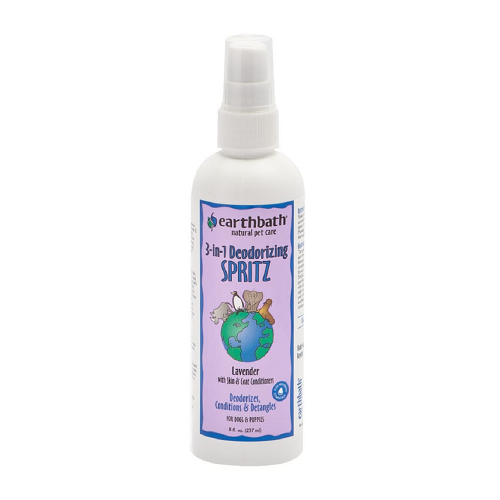 Earthbath SPRITZ: Deodorizing - LavenderPuppies are known for their puppy-fresh scent, but after a day of play, puppies can smell, well… not so fresh. Our Puppy Spritz is the simple solution to keep your puppy smelling fresh and give her coat a healthy shine and softness. The fresh botanical fragrance of wild cherry naturally dedorizes, while colloidal oatmeal, organic aloe vera, and vitamin E remoisturize skin and coat. Use between baths, or after bathing with earthbath Puppy Shampoo. Safe for dogs over 6 weeks old. Not for use on cats.Ingredients Purified water, renewable plant & coconut-derived conditioner & detangler, colloidal oatmeal, vitamin E, organic aloe vera, glycerin, lavender oil, citric acid, preservative.
