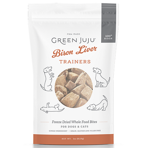 We’ve infused these high quality proteins with vibrantly colored fruits and vegetables loaded with vitamins and antioxidants to create irresistible freeze-dried whole food bites. Green Juju is known for our pet-pleasing blends of fresh greens. Now we’re bringing it out of the freezer with whole food bites that dogs will love anywhere, anytime. Feed them as high-value training treats or crumble them over a meal for a nutrient-packed topper. Choose between Beef Red, Bison Green and Salmon Blue — or rotate all three and feed the rainbow!