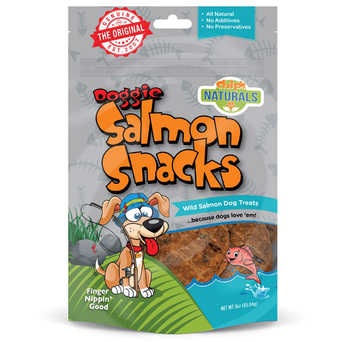 Doggie Salmon Snacks are a light and crunchy single-ingredient treat made with 100% Pure Wild Salmon. These dehydrated treats rich in vitamins and Omega- 3 promote healthy skin and coat. Doggie Salmon Snacks are a great guilt free alternative protein source for pets with allergies.GUARANTEED ANALYSIS