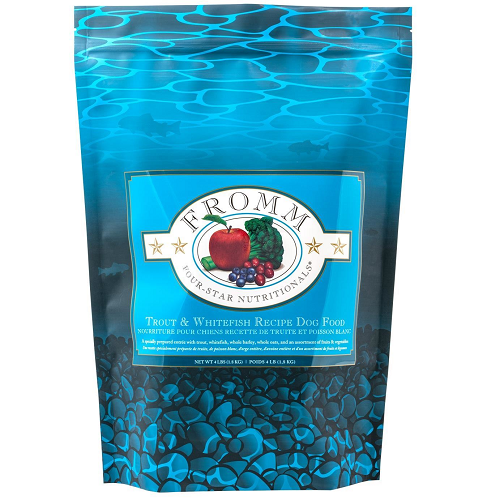 Fromm Trout and Whitefish Recipe Dog Food - Grain FreeA specially prepared entrée with trout, whitefish, whole barley, whole oats, and an assortment of fruits & vegetables