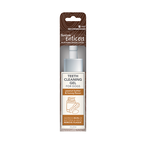 TropiClean Enticers Teeth Cleaning Gel – Peanut Butter & Honey Flavor will have your dog begging for a toothbrushing. The sweet, nutty flavors of peanut butter and honey will make toothbrush time your dog’s favorite time. Gel is made with naturally derived ingredients and proven to destroy 99.9% of harmful bacteria found in the mouth. For tip-top teeth, brush once daily.