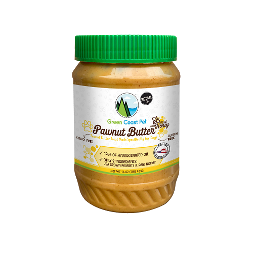 Pawnut Butter with Real Honey is made with just 2 ingredients- peanuts and real honey! Made special for pups without the use of xylitol, hydrogenated oil, salt, sugar, gluten, wheat, corn and soy.