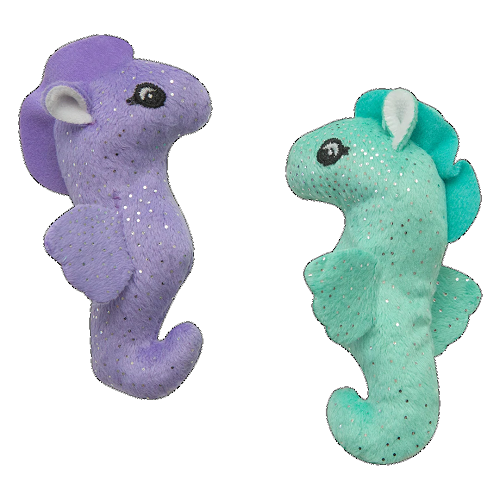 What's better then one seahorse for your cat? Two seahorses of course! Introducing SnugArooz Cat toys! This fun, crinkly 2pk of 4" cat toys (with catnip) will bring endless hours of fun to your kitty. Toys contain catnip and are made from recycled water bottles.