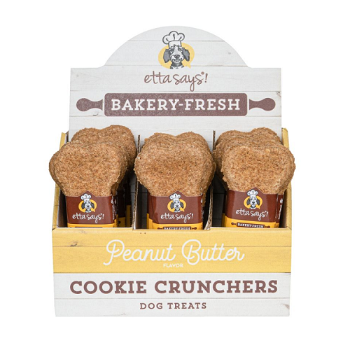 Etta Says! Cookie Crunchers are made from scratch with natural ingredients that are dough good, they will keep your dog crumbing back for more! Our cookies are baked with love and we’re spreading the word about our Peanut Butter and Cheddar & Bacon Cookie Crunchers.