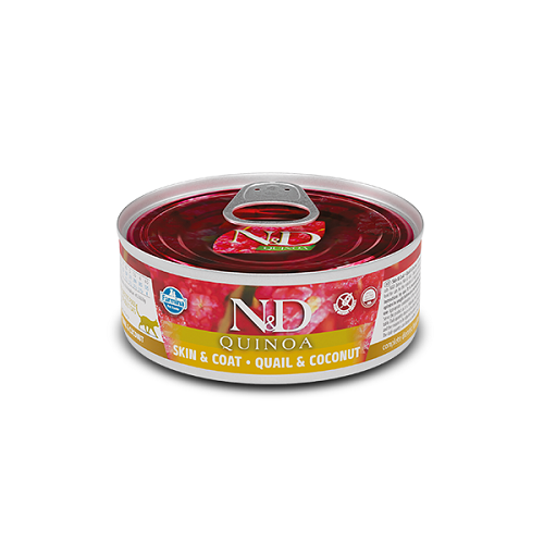 N&D Quinoa Cat Skin & Coat Quail & Coconut Recipe is formulated to meet the nutritional levels established by the AAFCO Cat Food Nutrient Profiles for maintenance. 100% Satisfaction Guaranteed.