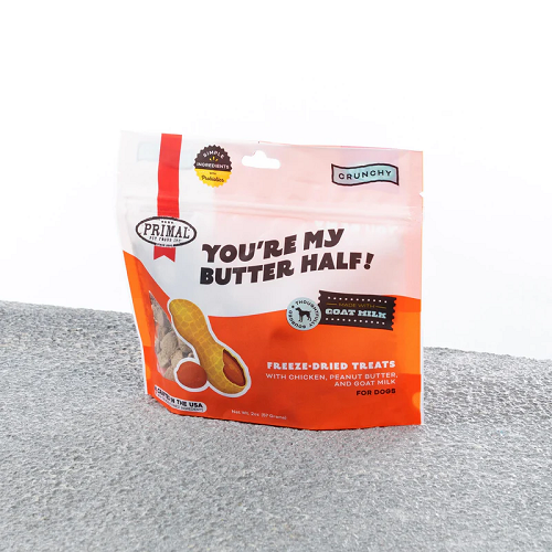 Give your butter half something to bark about with thoughtfully-sourced chicken, nutty peanut butter, goat milk, and gut-supporting probiotics.