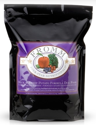 Fromm Duck and Sweet Potato Dog FoodSpecially prepared with Wisconsin Duck as a single source of meat, this formula combines the healthy benefits of sweet potato with a medley of other fresh fruits & vegetables to create this truely spectacular dish.