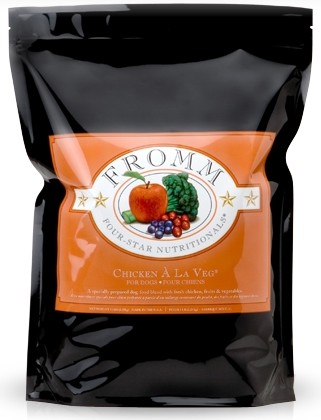 Fromm Chicken A La Veg Dog FoodYour dog is sure to love this gourmet entree. Chicken A La Veg is a specially prepared holistic blend of lean chicken, specialty grains, and fine produce delivered fresh daily, never dried or pre-processed.