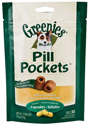 Greenies Pill Pockets Capsules for DogsWhy Greenies Pill Pockets Treats?Getting your pet to take a pill or medication can be diffcult and can leave you feeling frustrated and your pet angry, scared or confused.Greenies Pill Pockets Treats - Offer a proven solution to your pill-giving problem- Contain a built-in pouch suited for hiding a pill- Make taking pills a positive experience for your petIngredients: Rehydrated chicken, glycerin, wheat flour, vegetable oil, wheat gluten, dried corn syrup, dried cultured skim milk, natural chicken bouillon flavor, natural flavors, sodium bisulfate, xanthan gum, preserved with mixed tocopherols.
