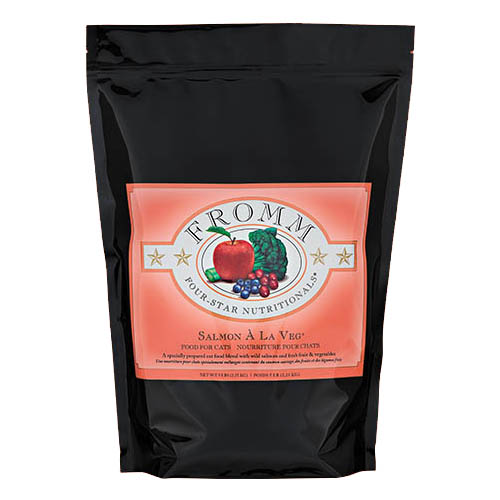 Fromm Salmon A La Veg Cat FoodA delectable fusion of fresh wild salmon & rice with broccoli, cauliflower, blueberries & parsley.