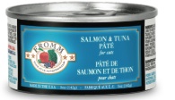 Fromm Salmon & Tuna Pate Canned Cat Food 5 oz - Grain FreeHuman-grade wild salmon and tuna finely diced and simmered in salmon broth. Fromm Four-Star Salmon & Tuna Pate Canned Entrée brings ultra premium, natural cat food to a new level.Ingredients: Salmon Broth, Salmon, Tuna, Ocean Fish, Chicken Liver, Pea Fiber, Tomato Paste, Potato Starch, Calcium Sulfate, Taurine, Choline Chloride, Salt, Potassium Chloride, Vitamin E Supplement, Iron Chelate, Zinc Chelate, Niacin Supplement, Vitamin A Supplement, Calcium Pantothenate, Potassium Iodate, Riboflavin Supplement, Manganese Supplement, Pyridoxine Hydrochloride, Vitamin D3 Supplement, Sodium Selenite, Thiamine Mononitrate, Copper Chelate, Vitamin B12 Supplement, Folic Acid, Biotin.Guaranteed Analysis: Protein (min) 8%, Fat (min) 2%, Fiber (max) 1.5%, Moisture (max) 80%, Ash (max) 1.9%, Magnesium (max) 0.025%, Taurine (min) .1%