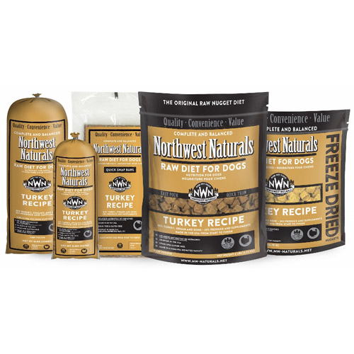 | Northwest Naturals Turkey Recipe is available in: 6lb nuggets, individually wrapped dinner bars, bulk dinner bars, chubs and freeze dried diet.