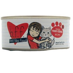 BFF Tuna Too Cool Cat RecipeBFF Cat Food Recipes are formulated to meet nutritional levels established by the AAFCO Nutrient Profiles for Adult Maintenance. Feed according to the age, size and activity of your cat. If fed alone, feed 1.0 oz for each pound of bodyweight daily, best fed twice a day. Your cat should have access to clean, fresh water. Refrigerate after opening.Ingredients: Tuna, Water Sufficient for processing, Sunflower Seed Oil, Locust Bean, Guar Gum, Carrageenan, Tricalcium Phosphate, Choline Chloride, Taurine, Vitamin E Supplement, Zinc Sulfate, Thiamine Mononitrate (Vitamin B1), Nicotinic Acid (Vitamin B3), Ferrous Sulfate, Calcium, Vitamin A Supplement, Potassium Iodide, Manganese Sulfate, Vitamin D3 Supplement, Copper Sulfate, Riboflavin Supplement (Vitamin B2), Pyridoxine Hydrochloride (Vitamin B6), Folic Acid, Menadione Sodium Bisulfate Complex (Source of Vitamin K), Vitamin B12 Supplement.