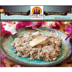 Polynesian BBQ - Grain FreeRed Bigeye is the unique ingredient here, sitting atop sardine cutlets and whole meat tuna. Fit for their carnivorous and nocturnal lifestyles, as you could guess, "bigeye" refers to this fish's unusually large eyes. Native to the tropical and subtropical regions of Pacific and Indian Oceans, Bigeyes tend to live near rock outcroppings or reefs.Ingredients: Sardine, Tuna Whole Meat, Water Sufficient for processing, Red Bigeye, Vegetable Gums (Locust Bean, Guar, Carrageenan), Sunflower Seed Oil, Taurine, Vitamin E Supplement, Zinc Sulfate Heptahydrate, Ferrous Sulfate Monohydrate, Nicotinic Acid (Vitamin B3), Thiamine Mononitrate (Vitamin B1), Calcium Pantothenate, Manganese Sulfate Monohydrate, Potassium Iodide, Vitamin A Supplement, Copper Sulfate Pentahydrate, Vitamin D Supplement, Riboflavin Supplement (Vitamin B2), Pyridoxine Hydrochloride (Vitamin B6), Folic Acid, Menadione Sodium Bisulfate Complex (Source of Vitamin K), Vitamin B12 Supplement.