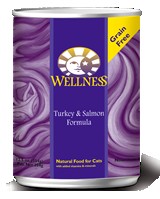 Wellness Turkey and Salmon Canned Cat Food Wellness® Canned Turkey and Salmon Formula is an excellent source of high quality protein and essential fatty acids, made with turkey free of added growth hormones and steroids. We use USDA chicken as our most plentiful ingredient because it is a delicious, digestible protein source. This recipe also includes delicious sweet potatoes and carrots as an excellent source of vitamins, minerals and beta-carotene. Fresh, whole cranberries and blueberries are added to help maintain proper urinary tract health.