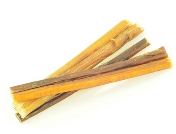 Thin Bully stickMany people choose our thin Bully Sticks for smaller breeds of dogs. Although large dogs like them too, many larger dogs can eat a thin Bully Stick fairly quick. As such, they are great snacks for large pooches; but are the perfect size for a smaller dog. They are made from free-ranging Brazilian cattle and are a great choice for an all-natural chew. Any Bully Stick will promote healthy teeth and gums because of the chewing action and saliva generation required to eat the stick. These are our thin bully sticks about the size of a number two pencil. These bully sticks are also our all natural low odor variety.Made from FREE-RANGE grass fed cattle. We believe that cattle should be free range and graze on grass rather than be cooped up in feedlots. In our opinion, this makes for a higher quality product the way that nature intended.
