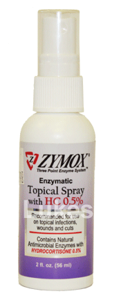 Zymox Topical Spray for Hot Spots & Skin Infections 2fl oz.ZYMOX® Topical Spray provides a more concentrated formula for direct application to skin infections and wound sites. No need to disinfect area to be treated because the LP3 Enzyme System reacts with the infectious pus and debris to form its antimicrobial properties. Pre- cleaning and cleaning during treatment disrupts this biological system and will negatively affect results. Recommended for use on wounds and the most troublesome skin infections.BACTERIALSurface Infections: