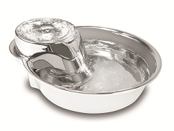 Pioneer Pet Stainless Steel Drinking Fountain - Big Max DesignPet fountains help your animals to drink more water because they are attracted to moving water. In the past the only option you had for an automatic pet fountain was a plastic one. Now finally there is a stainless steel pet drinking fountain that looks like it belongs in your kitchen. Our stainless steel drinking fountain is extremely easy to take a part and clean. There has never been a pet fountain that looks or works as well as this one does.Features and BenefitsCirculating drinking water is naturally appealing to your petReplaceable charcoal filter for clean and pure, healthy water Dishwasher safe, stainless steel construction allows for easy cleaning Using stainless steel bowls help to protect your pets from bacterial infection Extra large drinking area to accommodate any size petContinuously filters water 128 oz capacity Replacements available: Pioneer Pet Replacement Filters for Stainless Steel Fountains (#3002)