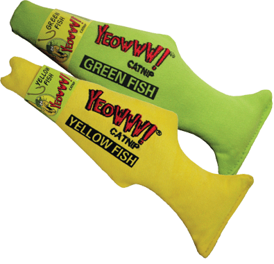 Yeowww! Green and Yellow FishCat gone fishin’? At over 7” long and completely filled with YEOWWW! organically grown catnip, these fish are keepers! Comes in bright yellow and bright green.All Yeowww! Brand catnip is 100% Organically Grown, making a more potent, premium blend of leaf and flowertop your kitty is certain to enjoy. Every Yeowww! toy is completely stuffed with it! They don't use any cotton fillers and certainly none of the unfiltered, 'toy grade' catnips that could be full of contaminants and sold at a much cheaper price. Yeowww! Brand catnip stands out from the rest, and your cat will know the difference.