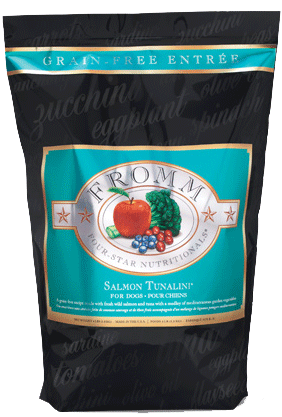 Fromm Salmon Tunalini Dog Food - Grain FreeA grain-free recipe made with fresh wild salmon and tuna with spinach, zucchini, eggplant, and olive oil.