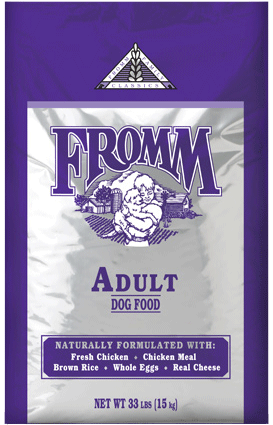 Fromm Adult Dog Food - ClassicsEach recipe is prepared in small batches at our own family run plant in Wisconsin. Fromm oversee every aspect of production from start to finish ensuring each step measures up to our standards. Their recipes contain only USDA-inspected ingredients. They prepare their dry recipes at their own USDA-inspected plant in Wisconsin. Every delivery of raw ingredients is thoroughly inspected by Fromm's team of quality control experts. In lieu of baking, which can damage nutrients with high temperatures; Fromm uses a low-temperature, high-moisture extrusion process that assures that all starch is thoroughly cooked, and that no damage occurs to the proteins.Their recipes are wheat free, corn free, and by-product free. Their meat and fish are free of any hormones or medications and their products contain no artificial or industrial preservatives.