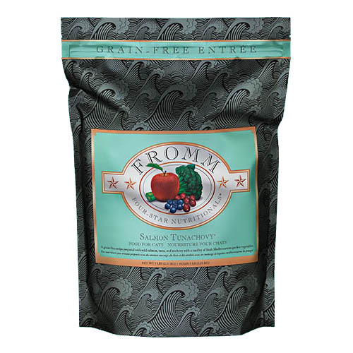 Ingredients: Salmon, salmon meal, peas, pea protein, whole dried egg, pea flour, potatoes, dried tomato pomace, tuna, anchovy meal, sweet potatoes, fish broth, anchovy, sardine meal, chicken liver, salmon oil (preserved with mixed tocopherols), chicken fat (preserved with mixed tocopherols), pea fiber, flaxseed, olive oil (preserved with mixed tocopherols), carrots, celery, parsley, lettuce, tomatoes, spinach, zucchini, eggplant, chicken cartilage, salt, chicory root extract, yucca schidigera extract, taurine, dl-methionine, potassium chloride, sodium selenite, folic acid Vitamins [vitamin A acetate, Vitamin D3 supplement, Vitamin E supplement, Vitamin B12 supplement, choline bitartrate, niacin supplement, d-calcium pantothenate, L-Ascorbyl-2-polyphosphate, riboflavin supplement, thiamine mononitrate, pyridoxine hydrochloride, biotin], Minerals [zinc sulfate, ferrous sulfate, manganous sulfate, magnesium sulfate, copper sulfate, cobalt carbonate, calcium iodate, sorbic acid (preservative), ferrous proteinate, zinc proteinate, copper proteinate, manganese proteinate, magnesium proteinate, cobalt proteinate]Dried lactobacillus acidophilus fermentation product, dried bifidobacterium longum fermentation product, dried lactobacillus plantarum fermentation product, dried enterococcus faecium fermentation product