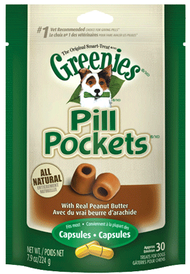 Greenies Pill Pockets Capsules for DogsWhy Greenies Pill Pockets Treats?Getting your pet to take a pill or medication can be diffcult and can leave you feeling frustrated and your pet angry, scared or confused.Greenies Pill Pockets Treats - Offer a proven solution to your pill-giving problem- Contain a built-in pouch suited for hiding a pill- Make taking pills a positive experience for your petIngredients: Rehydrated chicken, glycerin, wheat flour, wheat gluten, peanut butter, dried corn syrup, dried cultured skim milk, peanut oil (preserved with mixed tocopherols), vegetable oil, natural flavors, sodium bisulfate, xanthan gum, preserved with mixed tocopherols, rosemary extract.