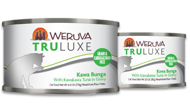 Weruva Truluxe Kawa Booty Canned Cat FoodAKA Mediterranean Harvest without the veggies... The sure fire hit with the kitties is made with dolphin safe, wild caught kawakawa tuna. Kawakawa tuna is small breed, wild caught and sustainable. The finickiest of cats will jump on in! And hey, it looks so good you may dive in too!... “Kawa Bunga!!!”Ingredients: Tuna*, Water Sufficient for processing, Potato Starch, Sunflower Seed Oil, Tricalcium Phosphate, Fish Oil, Xanthan Gum, Choline Chloride, Taurine, Vitamin E Supplement, Zinc Sulfate, Thiamine Mononitrate (Vitamin B1), Nicotinic Acid (Vitamin B3), Ferrous Sulfate, Calcium Pantothenate, Vitamin A Supplement, Potassium Iodide, Manganese Sulfate, Vitamin D3 Supplement, Copper Sulfate, Riboflavin Supplement (Vitamin B2), Pyridoxine Hydrochloride (Vitamin B6), Folic Acid, Menadione Sodium Bisulfite Complex (Source of Vitamin K), Vitamin B12 Supplement.