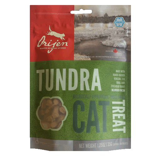 Orijen Freeze-Dried Original Cat TreatsYour cat is a carnivore, evolved to thrive on whole prey that perfectly matches her nutrient needs. That's why Orijen treats are made with 100% meat, poultry or fish - all delivered fresh to nourish your cat as nature intended.Ingredients: Boneless Venison, Venison Liver, Boneless Elk, Elk Liver, Boneless Quail, Steelhead TroutGuaranteed Analysis: Crude Protein (min.) 45%, Crude Fat (min.) 35%, Crude Fiber (max.) 1%, Moisture (max.) 2%Calorie Content:Less than 3 calories per treat